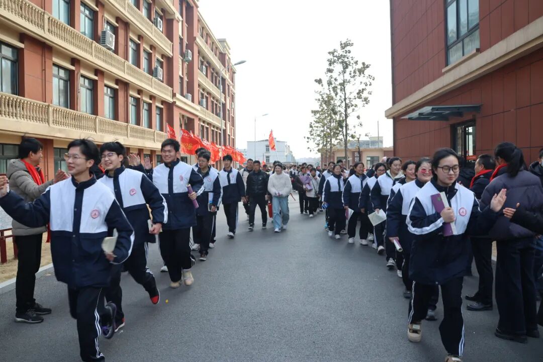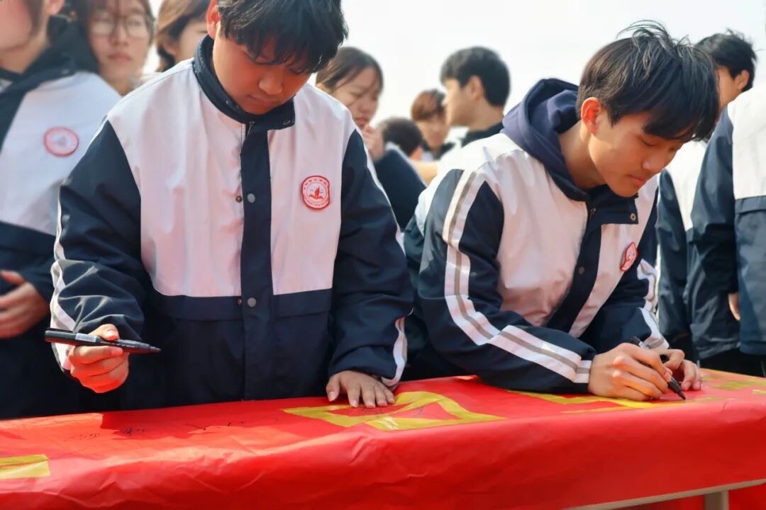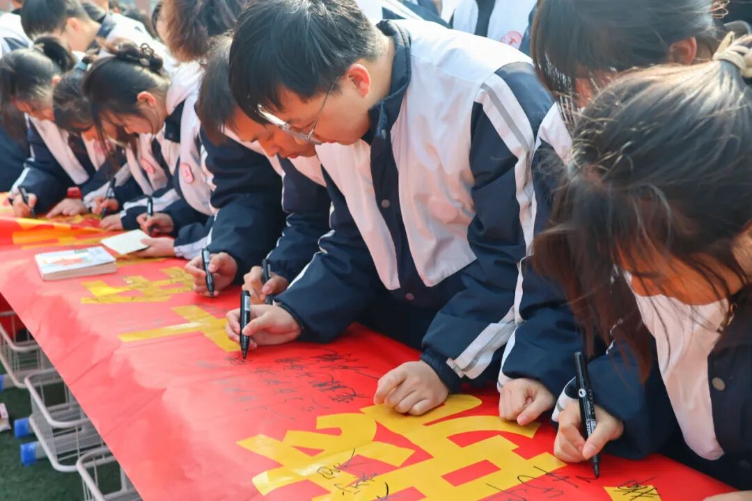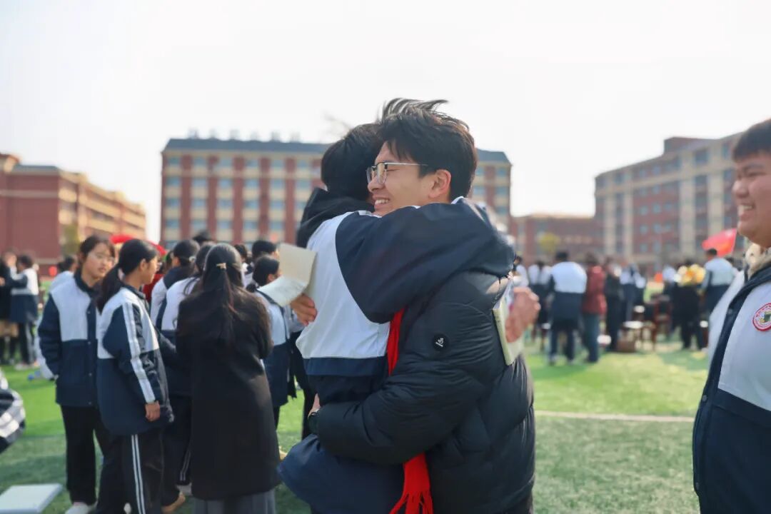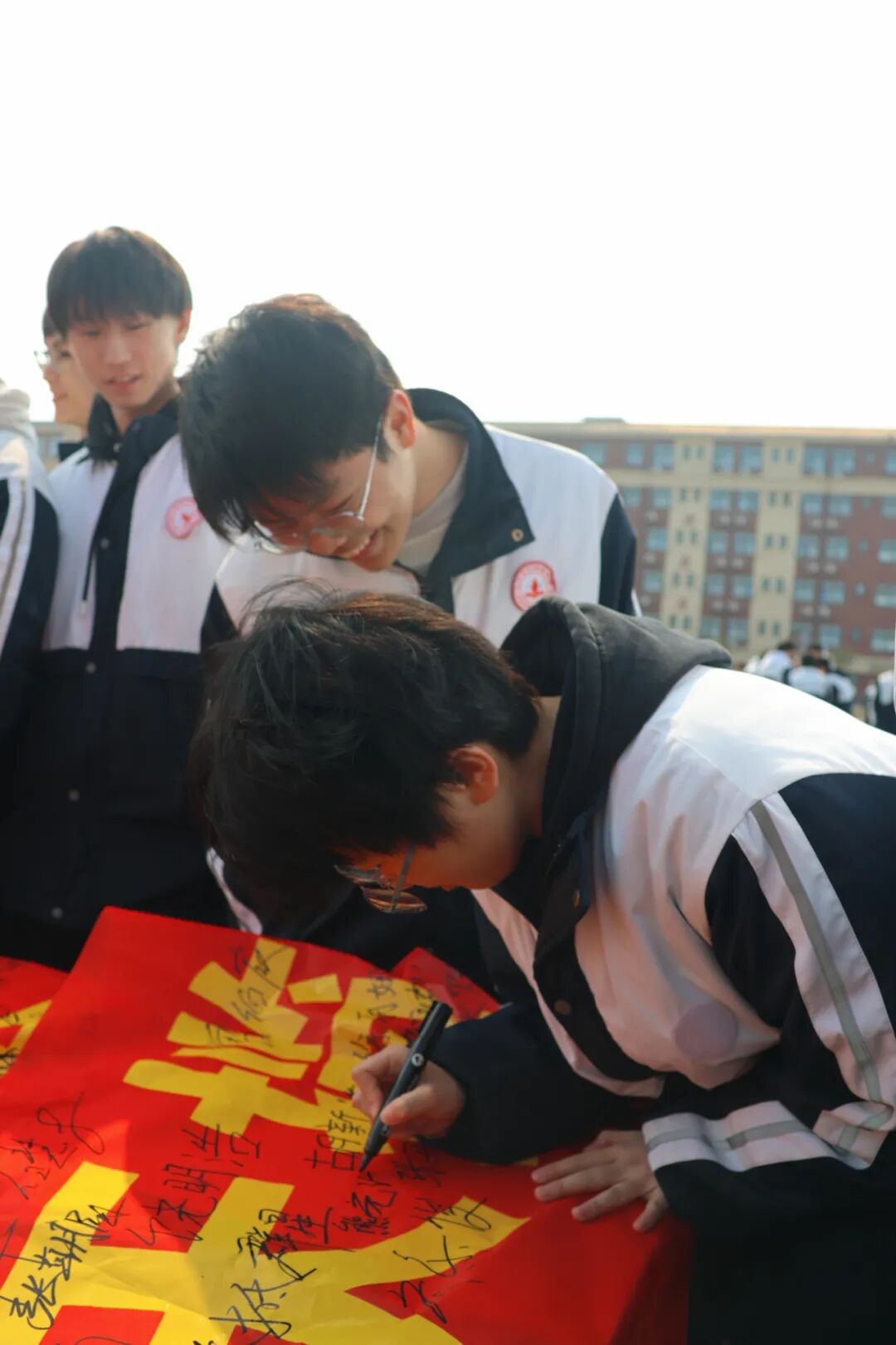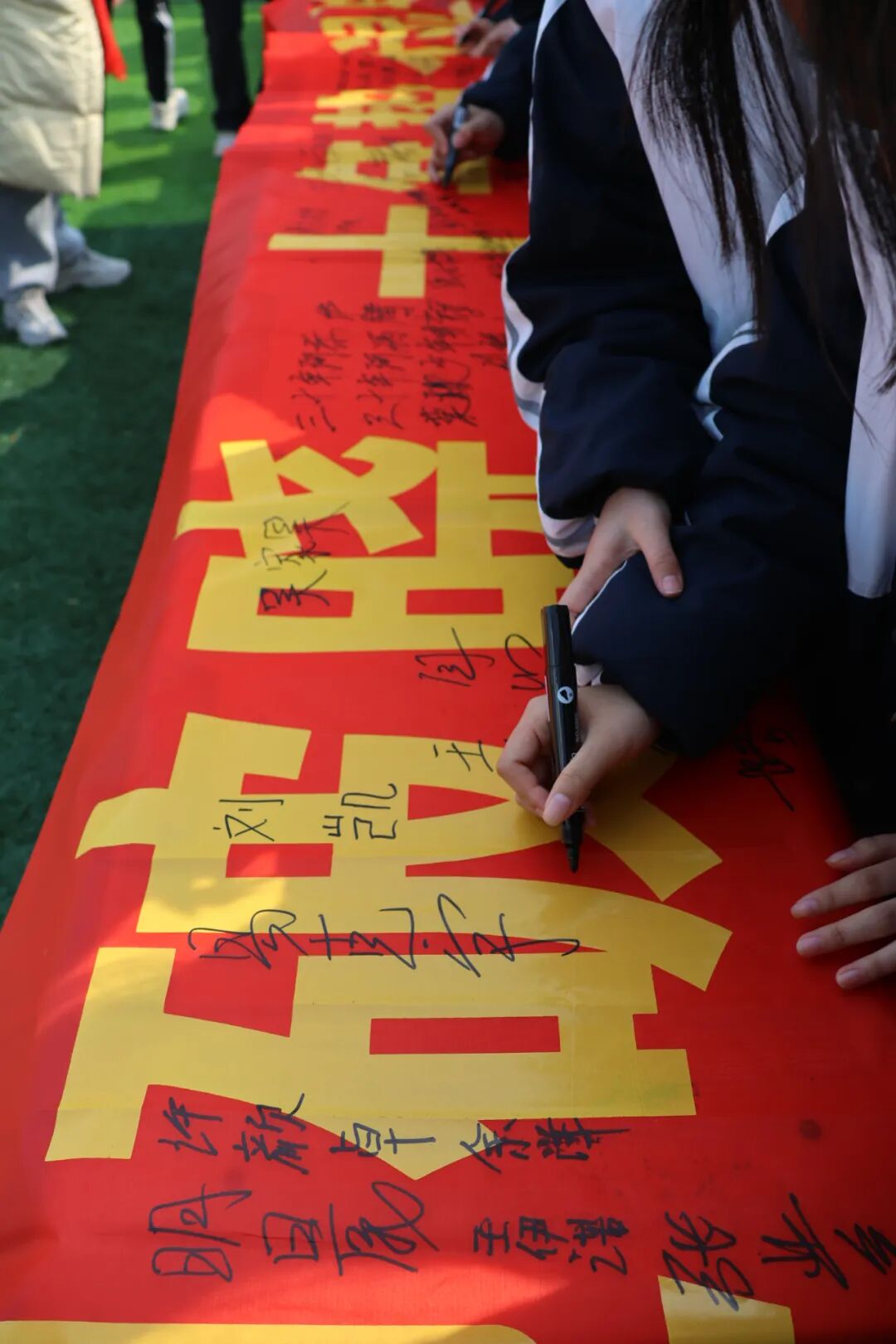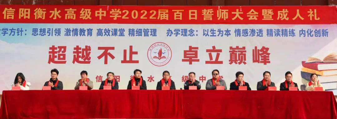 點擊下方小程序即可進(jìn)入商城購買 信衡百日誓師 暨成人禮 當(dāng)?shù)褂嫊r牌翻至"100"的時刻,當(dāng)青春遇上決勝時刻,信衡高三學(xué)子正以最熾熱的情懷,共赴這場青春與夢想的雙向奔赴。2月25日上午,我校2022級高三全體師生與家長齊聚天驕操場,以一場莊嚴(yán)而激昂的高考百日沖刺誓師暨成人禮活動,為青春加冕,為夢想壯行。 入場·破繭 橫幅如炬,成功門巍然矗立。校領(lǐng)導(dǎo)攜全體高三教師系紅圍巾列隊以待,等待學(xué)生跨越成功之門。穿過成功門時,學(xué)生和老師們的笑容以及他們的每一次擊掌都是能量的傳遞。 班旗獵獵,腳步鏗鏘。班主任帶領(lǐng)學(xué)生與家長并肩穿越成功門時,他們18歲的剪影在陽光中定格。這一刻,少年褪去稚氣,扛起家國擔(dān)當(dāng)。 儀式·礪劍 國歌激蕩,紅旗漫卷。馮主任的開幕詞如春雷炸響:"這一百天,是鳳凰浴火的涅槃之路;這一百天,是鯤鵬展翅的云霄之途!"高三學(xué)生代表周詠欣的演講擲地有聲。高三張哲同學(xué)領(lǐng)誓千人吶喊震徹云霄——"我以青春的名義宣誓......!"教師代表胡啟雯的叮嚀濕潤眼眶,孫主任帶領(lǐng)高三教師天團(tuán)莊嚴(yán)承諾:"我立志做一名負(fù)責(zé)任的教師……!"熊元浩家長的寄語滿懷期冀。 溫情·承恩 鞠躬時淚光閃爍,擁抱中笑容顯露,這一刻,家長和老師的臂膀是最溫暖的港灣。顫抖的指尖拆開一折又一折的信件,臺上主持人念著“永遠(yuǎn)愛你的爸爸......”,還有臺下家長攥緊著孩子寫給他們的信件......此情此景,讓無數(shù)師生和家長潸然淚下。 決戰(zhàn)·誓師 各個班級輪番亮劍,班主任化身領(lǐng)航戰(zhàn)將,帶領(lǐng)全班同學(xué)激情宣誓。年級主任的激情發(fā)言更是字字千鈞。 葛校長做總結(jié)發(fā)言 葛校長在最后用激情且有力量的文字祝福和告誡高三的學(xué)子們:此次高三學(xué)子的百日誓師大會暨成人禮將為25年高考吹響號角,這不僅標(biāo)志著你們從青澀走向成熟,更是你們用知識智慧和勇氣開拓未來的重要時刻。愿你們做一個志向遠(yuǎn)大的人,以夢為馬,比翼鴻鵠;愿你們做一個知恩圖報的人,飲水思源,回饋社會;愿你們做一個意志堅強(qiáng)的人,愈挫愈勇,無畏艱險;祝你們一生豐裕、從容、熱情、善良、幸福、通達(dá),腳下有路,眼中有光,心中有愛。 在這100天里,讓我們走好每一步路,上好每一節(jié)課,做好每一道題,每天實現(xiàn)一點的進(jìn)步;讓我們調(diào)動全部智慧,凝聚全部熱情,激發(fā)全部潛能,每天實現(xiàn)一個跨越!最后,祝你們所有人6月高考,凱歌高奏,金榜提名! 禮成·出征 每個班級百日誓言的條幅上,他們簽的不僅是姓名,更是青春的軍令狀。鏡頭定格的不只是笑臉,更是決勝千里的豪情。 結(jié)語 百日光陰,當(dāng)以分秒丈量;十八而志,應(yīng)以熱血擔(dān)當(dāng)。信衡全體勇士已佩妥劍戟,且看:六月長風(fēng)起,扶搖九萬里。待到金榜題名時,共譜信衡新華章! END 1 熱 2 熱 3 新 4 5